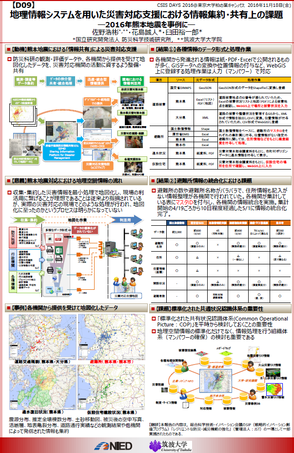地理情報システムを用いた災害対応支援における情報集約・共有上の課題について発表