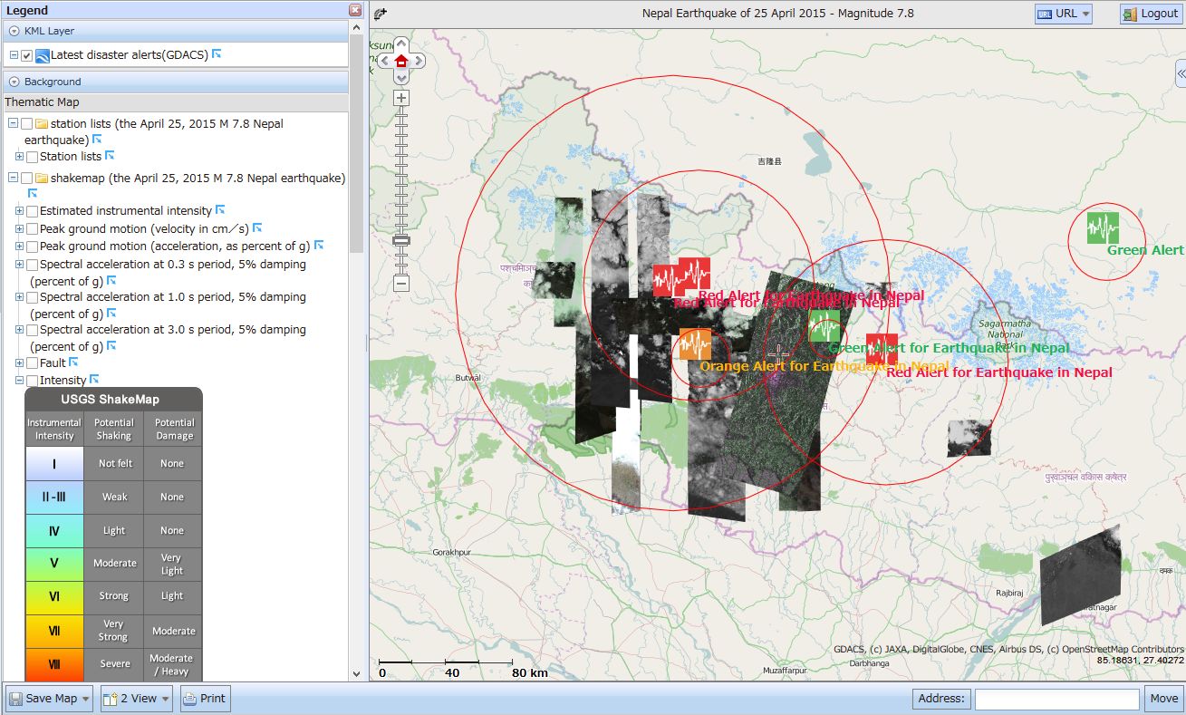 2015年ネパール地震での各種マップの重畳表示